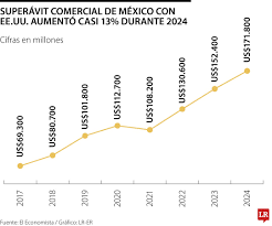 El superávit comercial de México frente a Estados Unidos registró una disminución durante enero de 2026, reflejando un mayor crecimiento de las importaciones mexicanas respecto a las exportaciones, de...
